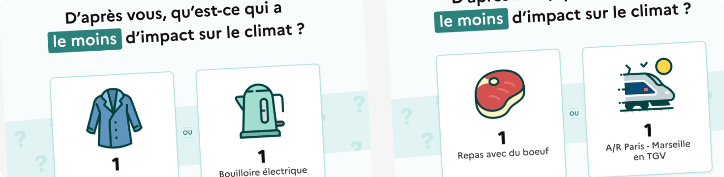 Afin de vous faciliter la tâche, nous avons concocté des visuels prêts à l’emploi pour communiquer autour du Quiz carbone.
